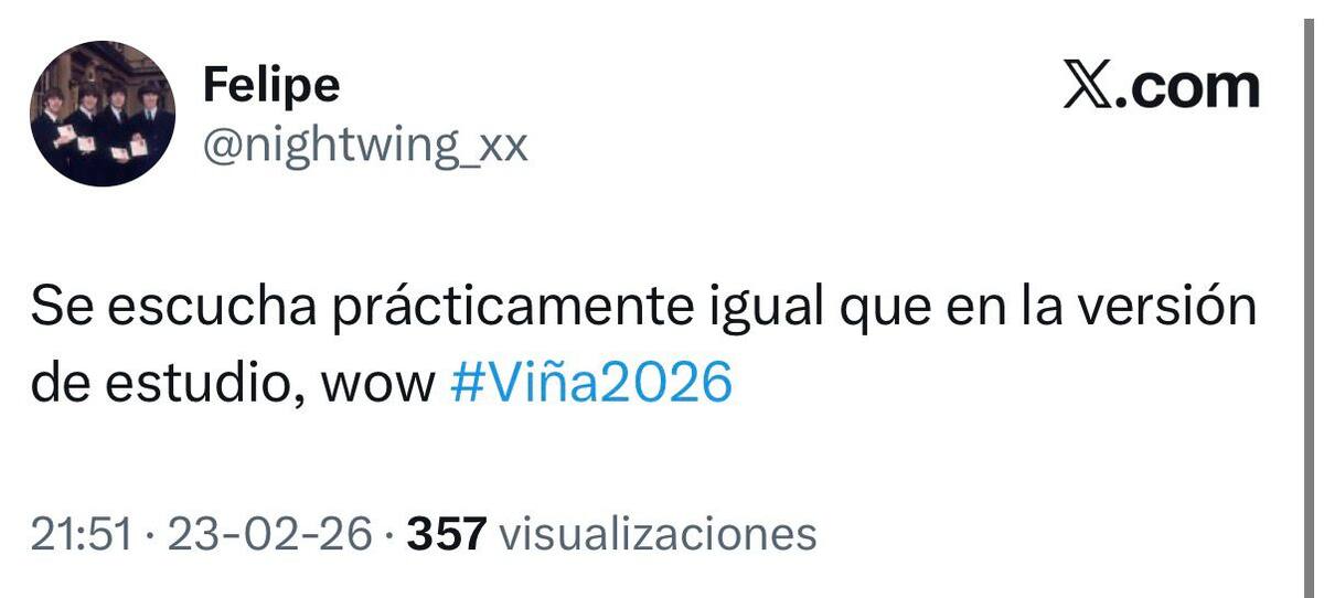 Entre memes, elogios y análisis en tiempo real, la idea de que suena idéntico a las grabaciones de estudio o a la voz de sus comienzos, terminó siendo uno de los mayores reconocimientos de la noche. En una Quinta Vergara exigente, la banda británica no solo respondió a la audiencia, sino que reafirmó su calidad con una presentación que, según el público digital, estuvo a la altura o incluso por sobre las expectativas.
