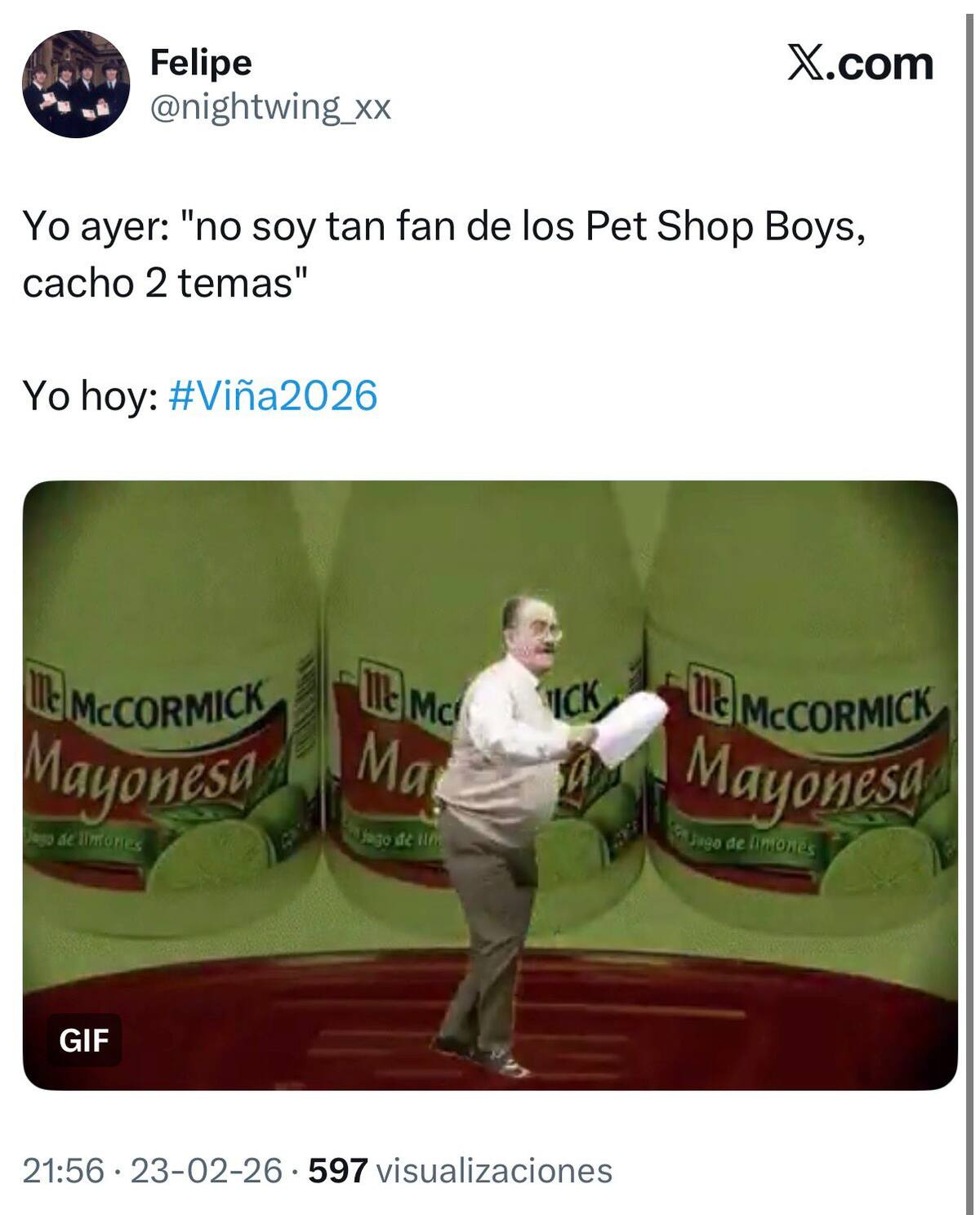 A medida que avanzaba el show, los comentarios siguieron multiplicándose, demostrando que más allá del repertorio y la trayectoria del dúo británico, su propuesta estética logró instalar conversación inmediata. Una vez más, el Festival de Viña confirmó que cada presentación no solo se vive en la Quinta Vergara, sino también en el termómetro digital que marcan los memes.