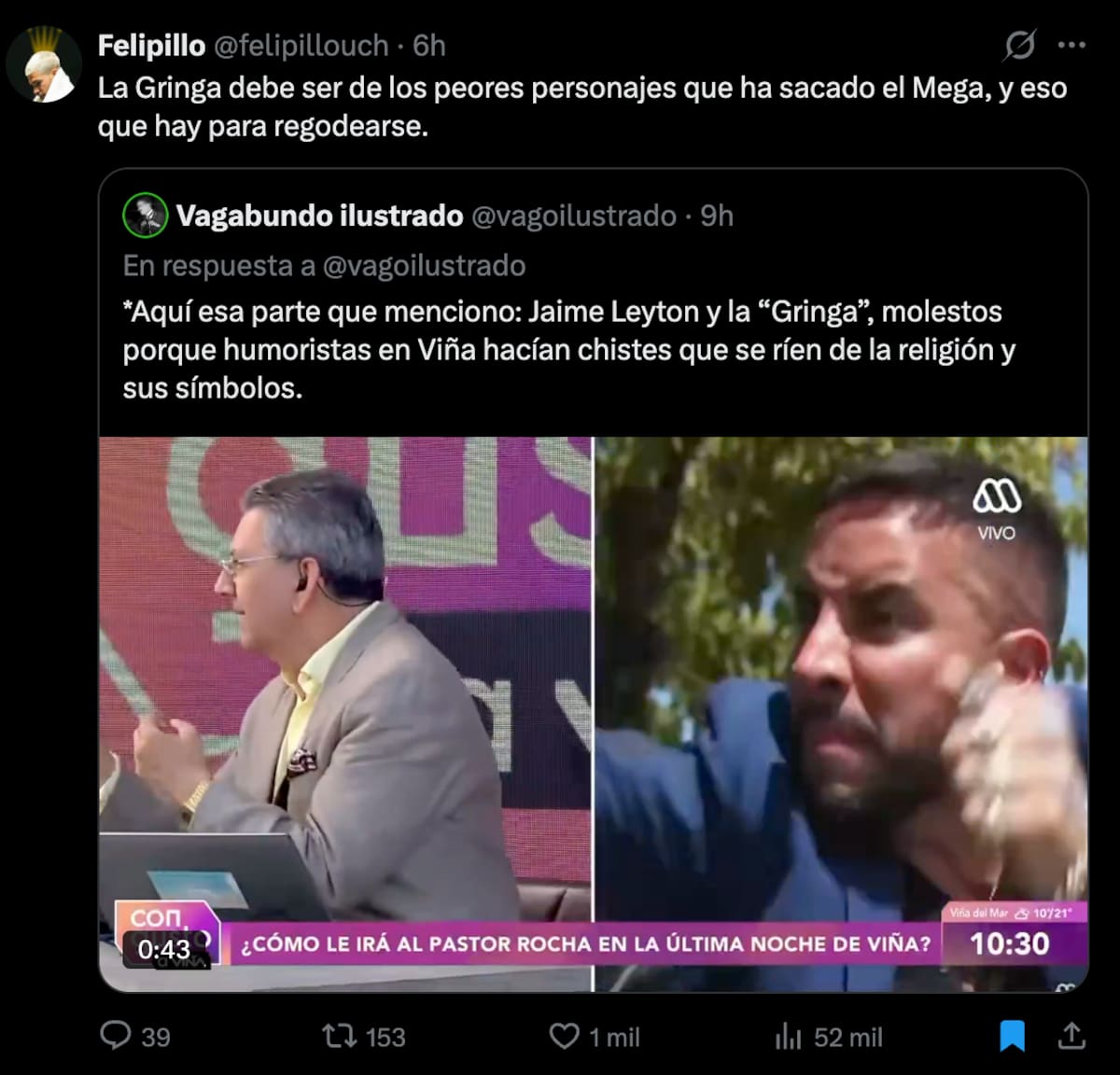 Pero el humor religioso y el de los evangélicos ha traído críticas de varios, pero también en TV. Esta mañana, en el matinal de Mega, canal organizador, fueron dos panelistas quienes cuestionaron el estilo del comediante.