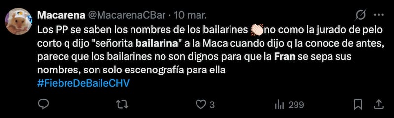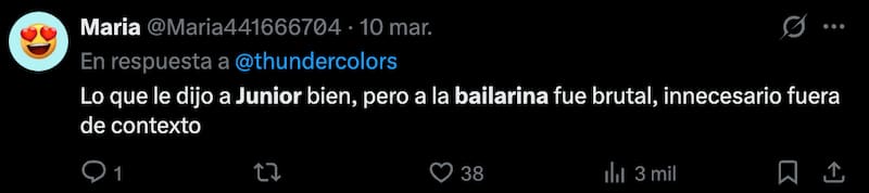 Los televidentes tampoco se tomaron con mucha gracia el incómodo momento que se vivió en pantalla el lunes, colocándose del lado de la bailarina y encontrando inoportunos los dichos de la jurada del estelar de baile.