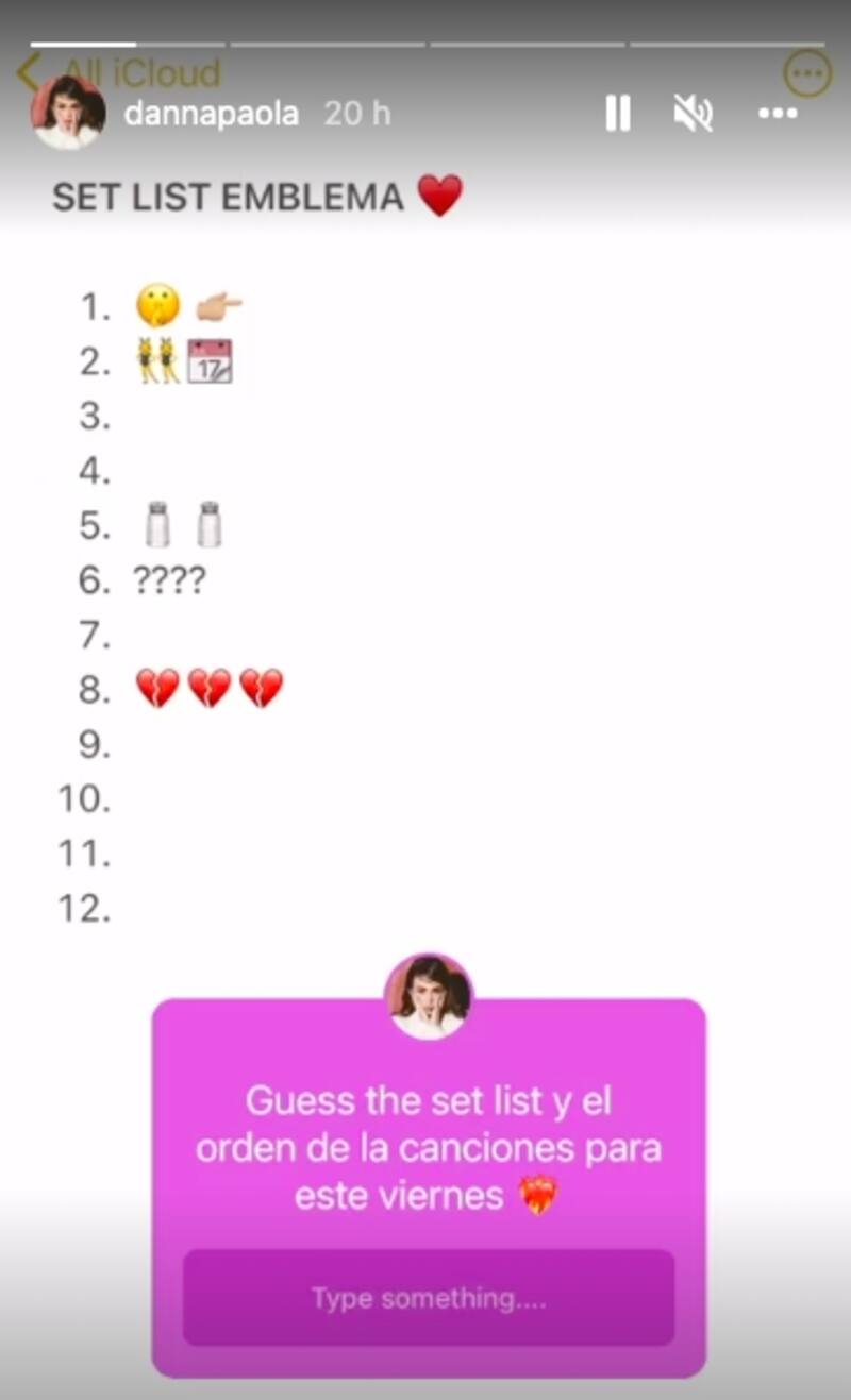 Además, en su cuenta oficial de Instagram, la intérprete de "Mala fama" y "Nada" ha puesto a sus seguidores a que intenten adivinar cuál será el set list de su presentación.