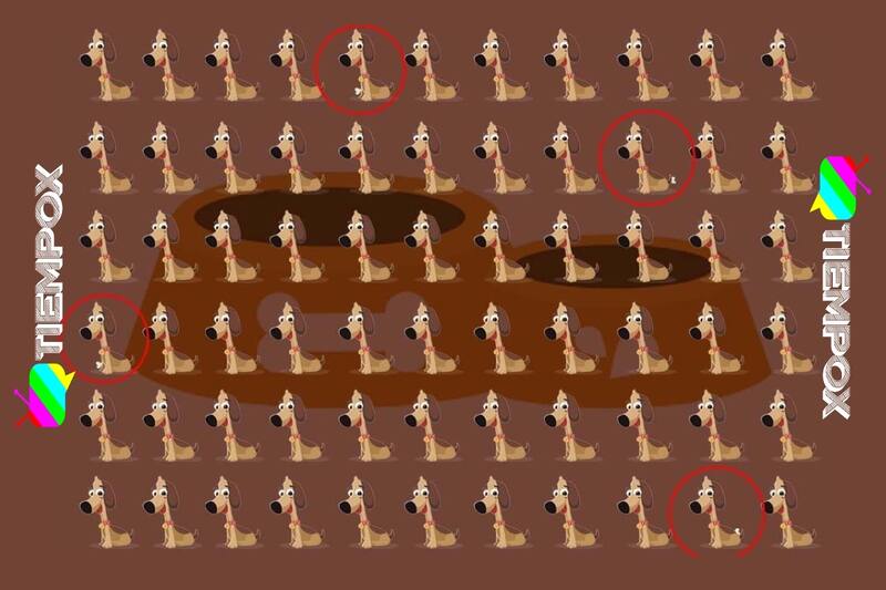 Encuentra los cuatros perritos diferentes