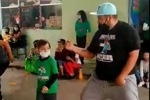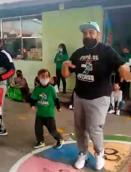 En la actividad, los papás, que se encontraban en el patioi de la escuela y lucian todos con ropa deportiva, tenían que bailar con sus hijos. En el clip comienza con una voz que pregunta "¿Y tu papá se portó bien en el festival del Dia del Padre'?"