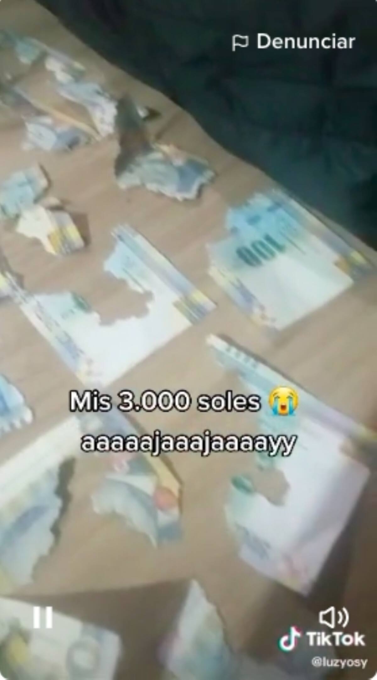 La usuaria @luzyosy utilizó el audio que dice "¡Mis Ahorros! ¡Mi Dinero! ¡Tanto trabajo que me costó ahorrarlo!" mientras mostraba los pedazos de billetes destrozados por una rata. Como texto escribió "M*ldita rata. Mis 3000 soles aaaaajaaaaayy", contando que tenía ahorrado lo equivalente a aproximadamente 14 mil pesos mexicanos.