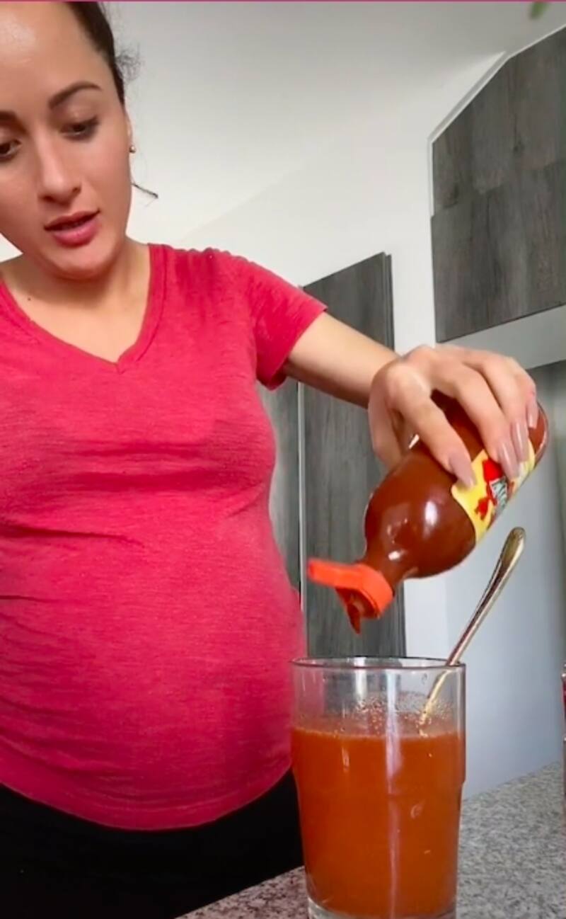 Posteriormente sacó una botella de salsa Valentina porque consideró que le faltaba picante al usar chile en polvo de tapa azul, decidió agregar más salsa picante al vaso con agua. "Yo de verdad espero que le gusten a mi esposo", dijo Amparo mientras hacía su mezcla.