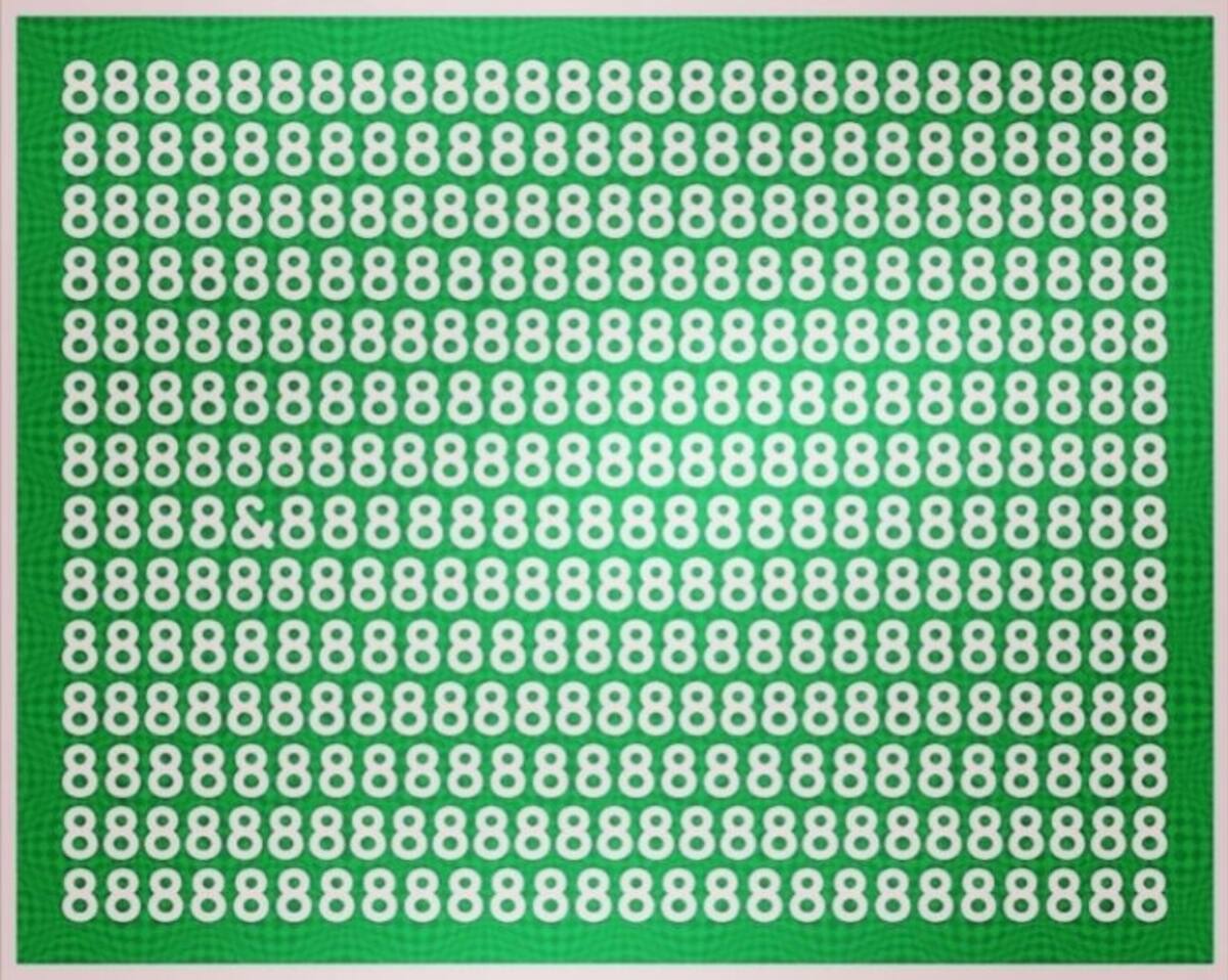 El reto de hoy consiste en encontrar el signo "&" que está camuflado entre varios números 8, esto se puede dificultar un poco porque ambos se parecen pero nada es imposible y estamos seguros que lo lograrás. Recuerda que solo tienes 5 segundos para resolverlo.