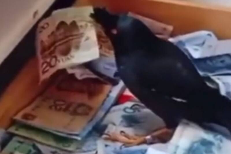 Mediante redes sociales circula un video del modus operandi de robo de un ave, si así como lo lees, pues se trata un pajarito del bosque, especie miná, la cual se encarga de llevar en su pico manojos de billetes hasta su amo.