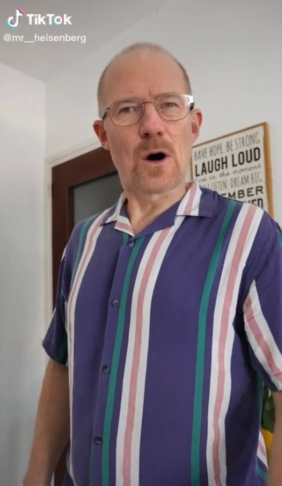 Si bien el protagonista de este video luce idéntico al reconocido Bryan Craston, no es así, se trata de un doble que se hace llamar "Mr. Heisenberg", en referencia al personaje de la serie de Netflix y cuyo parecido al actor lo ha hecho popular en TikTok.