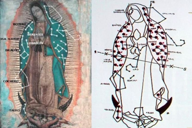 Dentro de la misteriosa imagen, se observan diversas estrellas que están presentes en el manto de la Virgen, las que según estudios astronómicos como el de Juan Hernández Illescas, corresponden a la configuración exacta del cielo visto desde Valle del Anáhuac el día en que la imagen fue revelada: la mañana del solsticio de invierno de 1531.