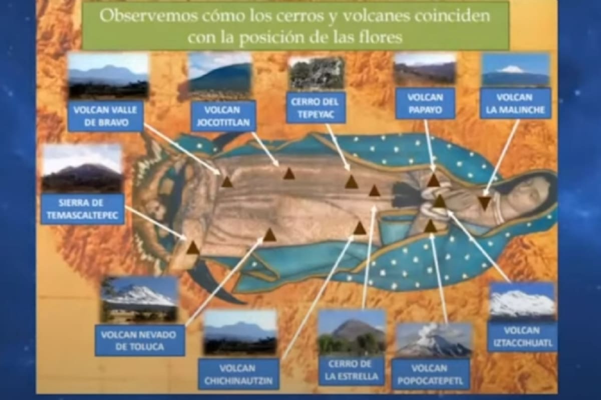 Dentro de la vestimenta de la virgen, se observan que esta tiene diseños de flores, en las cuales los estudiosos de la imagen han encontrado que representa los principales volcanes del país azteca, en una correlación geográfica bastante similar al poner la información en escala.