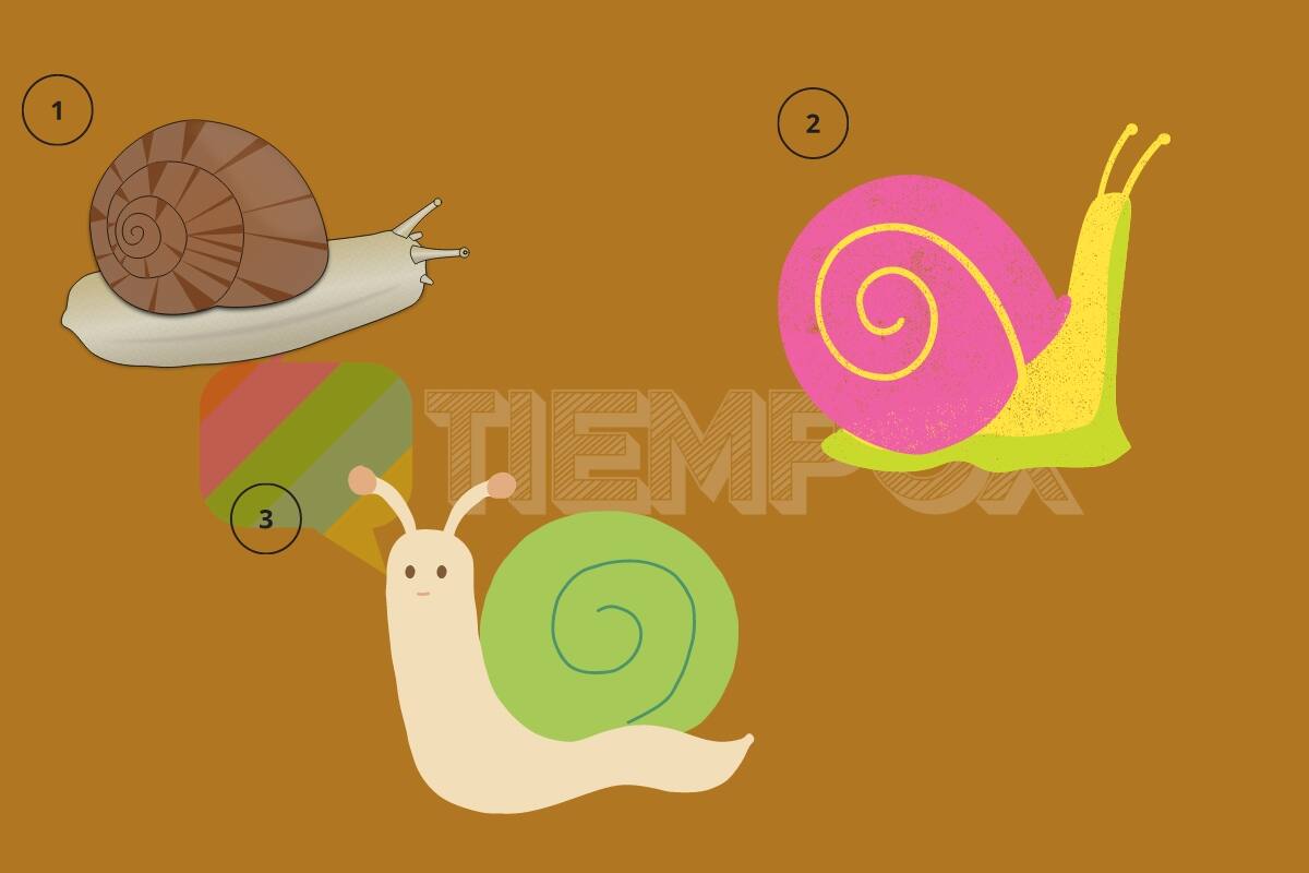 Lo primero que debes hacer es respirar profundo y observar la imagen detalladamente, luego debes elegir uno de los tres caracoles que aparecen a continuación.