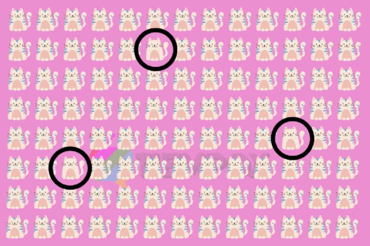En esta oportunidad te invitamos a encontrar los tres gatos diferentes, aquellos que no tienen las marcas celeste en su cuerpo. ¿Serás capaz de encontrarlos?